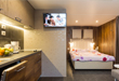 This was my third time here and I always like to coming back. The mobile house is very modern and nice looking, spacious and well equipped. It is so clean and you can see that is being taken care of very well which I appreciate very much! The bed is very comfortable and the shower is big with different options of running water. We were upgraded into the bigger mobile home and it was just amazing. We were staying in the smaller mobile home last year, which is very good as well, but the bigger one is more cozy with lots of space, and even though its for a family with kids, it was just about right for 2 people also, because more comfortable and more space. The kitchen is well equipped, but if you plan on cooking a lot, I do recommend taking with you the basic kitchen tools like knives, extra chopping desk and stuff like that. The staff is very friendly, helpful and kind. The camp is very peaceful and quiet and its literally 1 minute to the beach. Overall very satisfy with the whole stay and will be happy to come back!