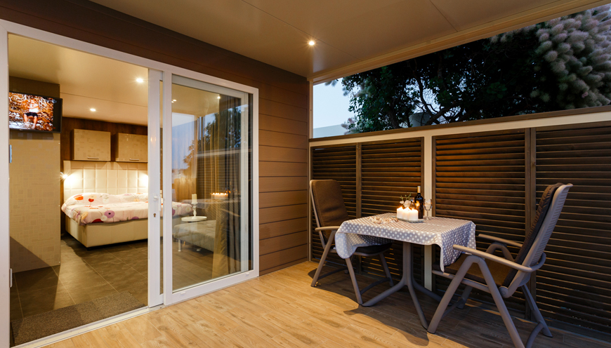 Mobile house is modern and looks like new. There is big terrace you can spent whole day if you want. Very close to beach.